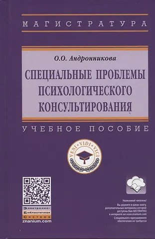 В учебном пособии предоставлена информация и необходимая методологическая помощь для формирования профессиональных компетенций в области консультативной практики и включает в себя комплекс информации по разным специальным вопросам психологического консультирования. В издании содержится необходимая информация по разделам курса "Консультативная психология", "Тренинг навыков консультирования", "Специальные проблемы психологического консультирования". Приведены методические указания, основные теоретические идеи лекционного курса, задания для выполнения самостоятельной работы студентов и самоконтроля, упражнения для отработки навыков.