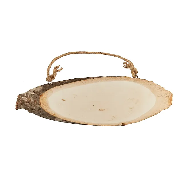 По факту длина спила (без коры, имею ввиду, светлую часть для рисунка и пр.) 18,5 см (для меня не критично), а с корой 23 см; но (!) ширина вместо заявленных 7 см - 5 см, получается очень узкий спил, сильно бросается в глаза. Верёвка нормальной длины, удобно вешать.