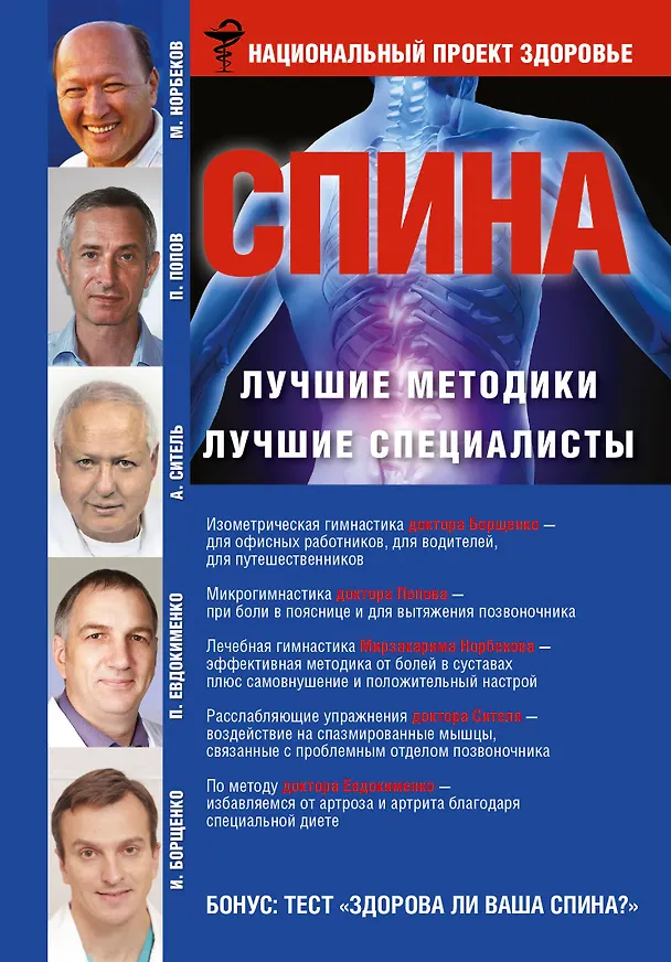 У вас побаливает спина? Вас мучают мигрени? Вам трудно ходить? Вы со страхом ожидаете очередного прострела в пояснице? Вы страдаете от болей в суставах? Вам поставили диагноз «артроз», «артрит» или «подагра»? Если «да», тогда эта книга написана для вас. В ней собран ценный опыт известных докторов, авторов популярных книг по медицине: мануального терапевта, профессора Анатолия Сителя. нейрохирурга, кандидата медицинских наук Игоря Борщенко, врача-реабилитолога Петра Попова, мануального терапевта, ревматолога Павла Евдокименко и доктора психологии Мирзакарима Норбекова.