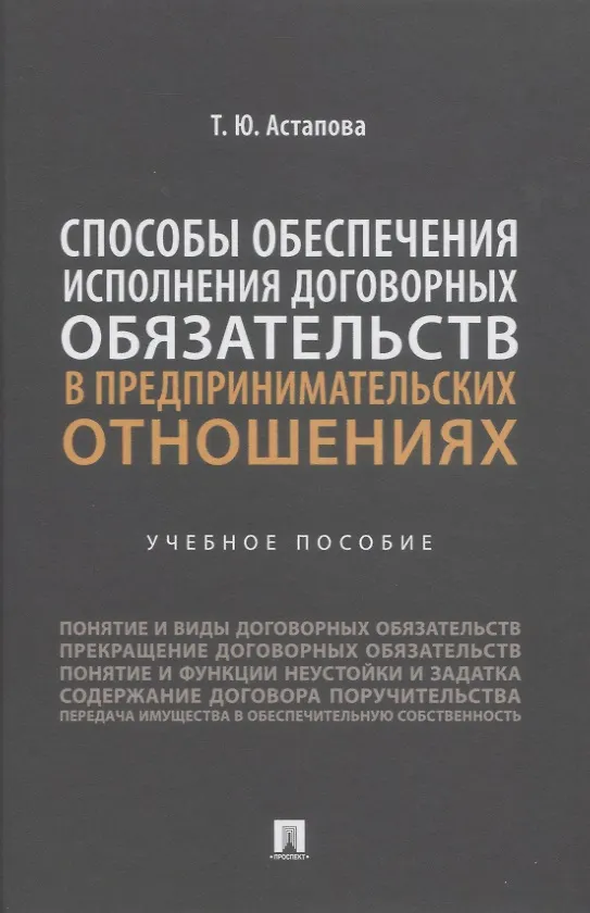 Учебное пособие выполнено в соответствии с требованиями федерального государственного образовательного стандарта высшего образования по направлению подготовки 40.04.01 «Юриспруденция» и рассчитано на студентов юридического факультета, обучающихся по программе подготовки магистров, а также иных лиц, интересующихся проблемами способов обеспечения исполнения договорных обязательств в предпринимательских отношениях.