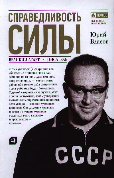 .Книга «Справедливость силы» — автобиография Юрия Власова. Он рассматривает себя в контексте судьбы советского спорта, рассказывает о множестве интересных и неординарных людей, знаменитостей, с которыми ему довелось встретиться и многие из которых были его поклонниками, как, например, Арнольд Шварценеггер.