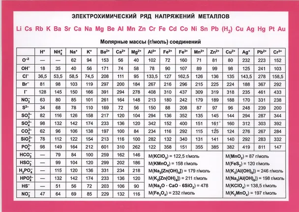 Справочные материалы. Электрохимический ряд напряжений металлов и их свойства