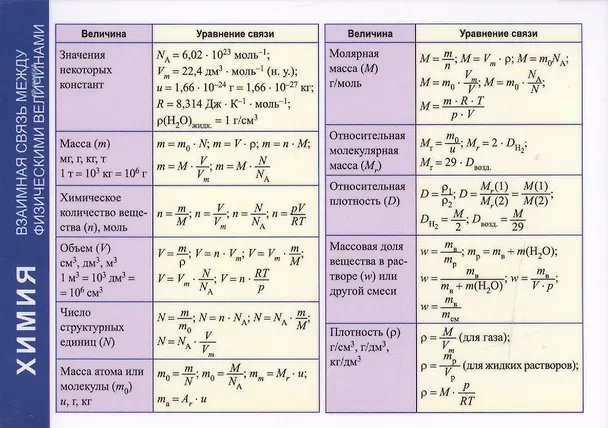 Справочные материалы. Химия. Взаимная связь между физическими величинами