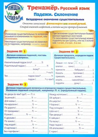 Справочные материалы. Тренажер. Русский язык. Падежи. Склонение