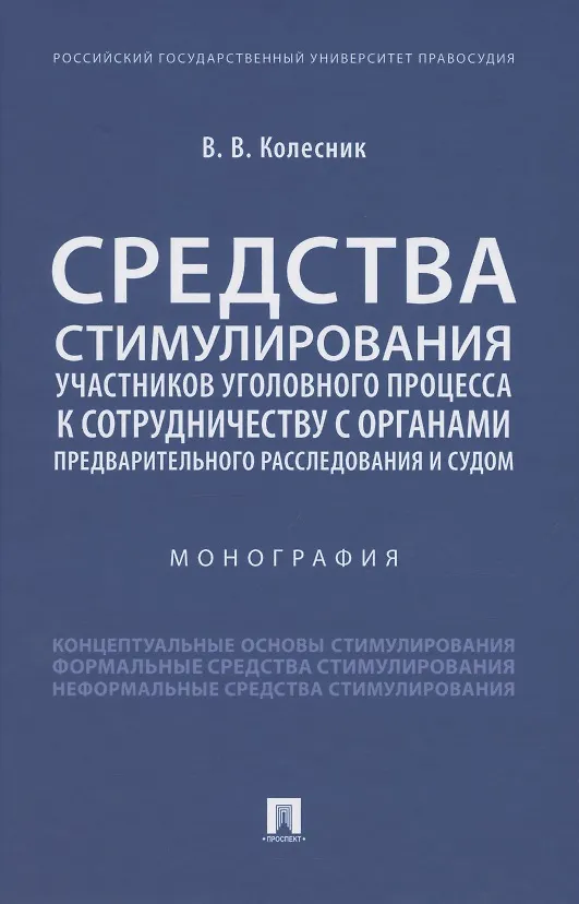 Настоящая монография выступает продолжением ранее опубликованной работы автора «Концепция стимулирования участников уголовного процесса к сотрудничеству с органами предварительного расследования и судом: теоретические основы». В монографии комплексно исследуется система средств стимулирования участников уголовного процесса к сотрудничеству с органами предварительного расследования и судом. На основе авторской концепции и механизма стимулирования участников уголовного процесса представлены формальные и неформальные средства такого стимулирования. Законодательство приведено по состоянию на 13 января 2021 г. Результаты исследования могут оказаться полезными в образовательном процессе, в научной
