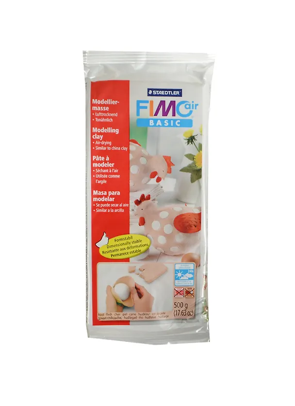 FIMOair basic — это похожий на обыкновенную глину и готовый к использованию материал, не требующий обжига и затвердевающий под воздействием воздуха.