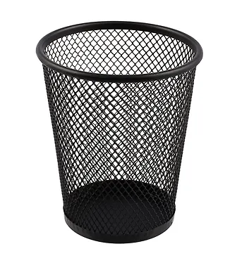 За счет конусоподобной формы устойчиво стоит на столе, помещается в нее много принадлежностей. Ее легко мыть, за счет много дырочек пыли в ней практически нет. Вес имеет значительный, за счет этого она также устойчива, при доставании из нее предмета даже под углом она не переворачивается. Цвет не слезает, форма не деформируется, металл качественный.