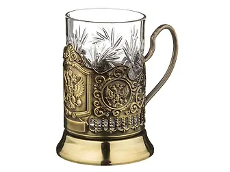 Стакан хрустальный с подстаканником черненым Герб России латунь (225мл) (386-803)