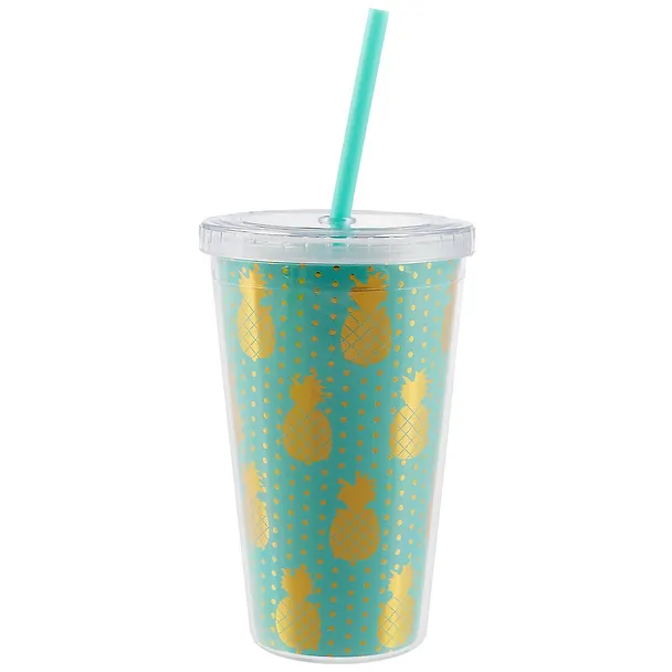 Стакан пластиковый с трубочкой Золотые ананасы (500 мл) (12-06646-902)
