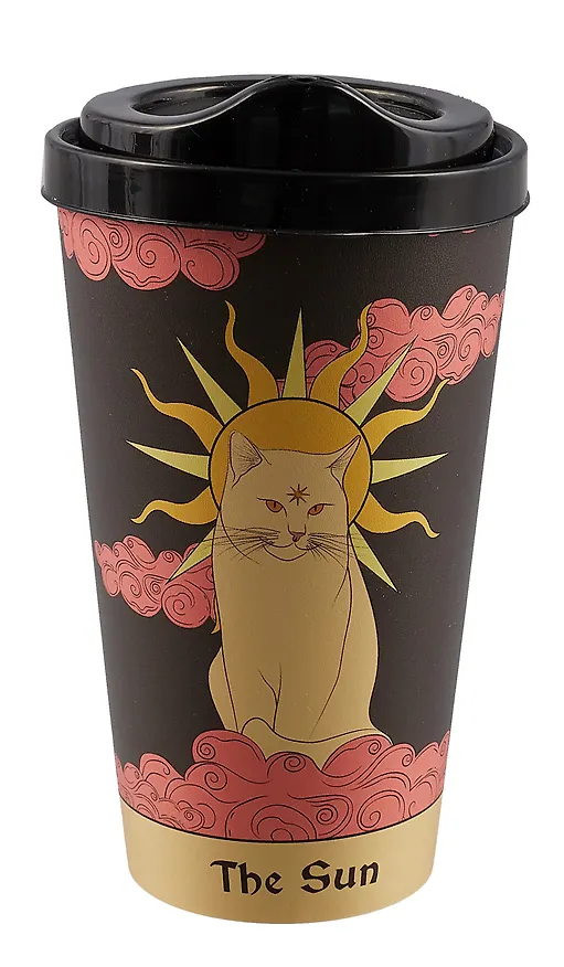Очень хороший и надёжный стакан.Пластик достаточно плотный и качественный,прекрасный внешний вид.Не банальный,и очень стильный.Котики и черный цвет,что может быть лучше? Мистический предмет своего рода.Удобно брать с собой,можно на учебу,или работу,и даже в поход.Удобно что есть крышка,и пить удобно,и так напиток лучше заварится,и удержит тепло.Цена, сказка,рекомендую!