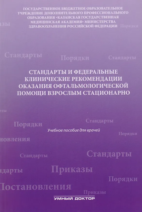 В учебном пособии представлены действующие стандарты (2013 г.) оказания офтальмологической стационарной помощи взрослому населению. Во второе издание учебного пособия включены федеральные клинические рекомендации, разработанные авторскими коллективами Общероссийской общественной организации "Ассоциация врачей-офтальмологов" по заболеваниям органа зрения, на которые не утверждены стандарты.