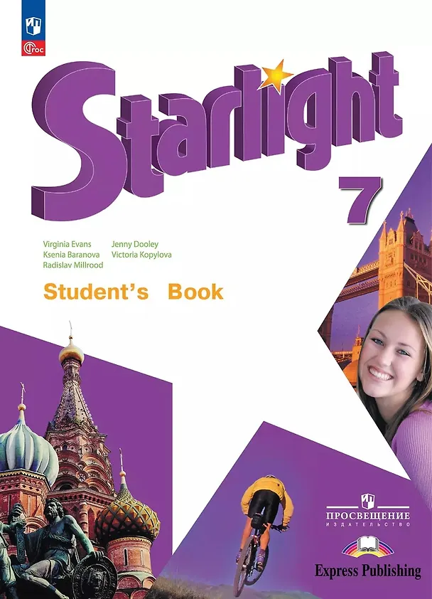 Учебно-методический комплект "Звёздный английский. 7 класс" для общеобразовательных организаций и школ с углублённым изучением английского языка. Материал создан интернациональным авторским коллективом: российским издательством "Просвещение" и британским издательством-партнёром Express Publishing (К.М. Баранова, Д. Дули, В.В. Копылова, Р.П. Мильруд, В. Эванс).