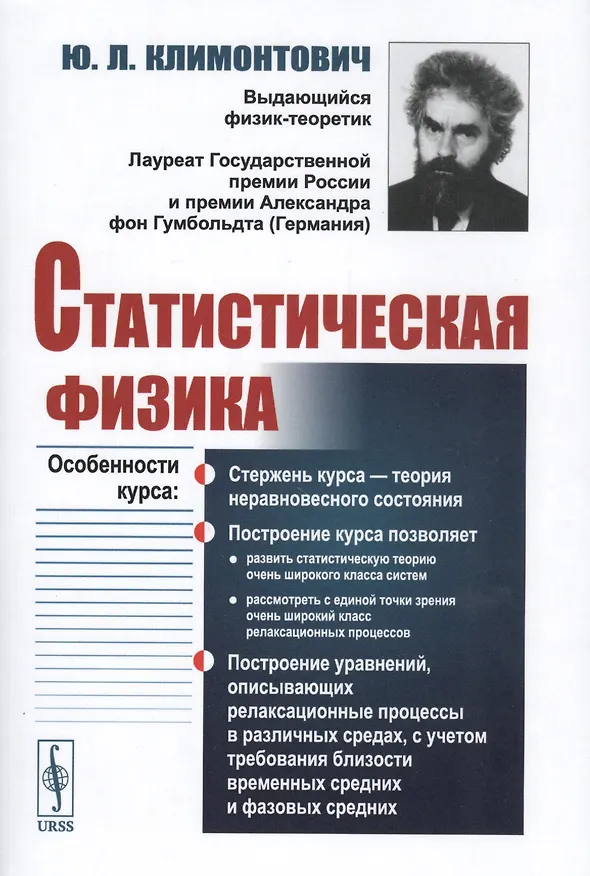 Данный курс отличается от существующих как по содержанию, так и по характеру изложения. Весь материал излагается на основе единого метода - теория неравновесного состояния служит стержнем всего курса. Это позволяет выявить внутреннюю связь явлений в простейших и самых сложных системах. Наряду с традиционным материалом излагается ряд проблем, служащих основой общих и специальных курсов, а именно: теория неравновесных флуктуаций в нелинейных системах, кинетическая теория электромагнитных процессов, неравновесные фазовые переходы, кинетическая теория химически реагирующих систем.