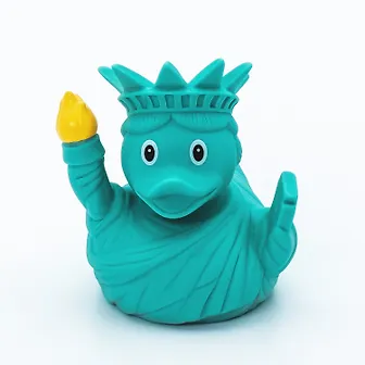 Резиновая уточка для ванной, стилизованная под Статую Свободы – оригинальный подарок и для самых маленьких детей, и для взрослых. Эту уточку от FUNNY DUCKS вы можете использовать в качестве детской игрушки, как необычный сувенир или предмет декора. В игрушке без труда узнается как классическая игрушка, так и всемирно известный монумент: уточка одета в голубой хитон, ее голову венчает корона, а руках она держит факел и каменный скрижаль. Такая игрушка позволит детям постарше познакомиться с одним из самых известных монументов мира, а малышам просто разнообразит игровой процесс. Вся продукция FUNNY DUCKS соответствует Директиве 2009/48/EC, которая устанавливает жесткие требования к качеству и безопасности игрушек, предназначенных для детей до 14 лет, поэтому наши уточки можно без опасения давать даже самым маленьким. Игрушка устойчиво держится на воде, не меняет свой внешний вид со временем, легко моется и может использоваться не только в ванной, но и на улице.