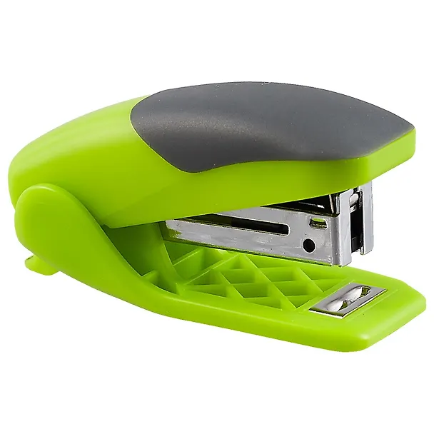 Если бы была петелька, закрепляющая верхнюю часть с нижней основой (чтобы в нерабочем положении степлер занимал ещё меньше места и случайно не удалось им щёлкнуть) - цены ему бы не было ;)