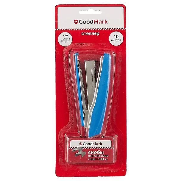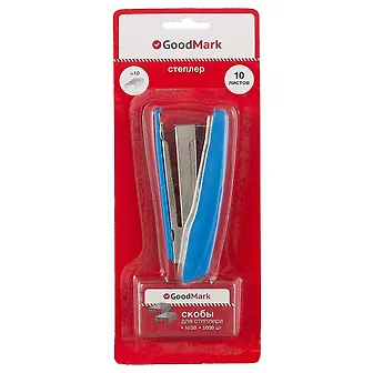 Бюджетный,яркий,голубого цвета,скобы в комплекте,большое количество скоб в упаковке с учётом бонусов просто отлично.