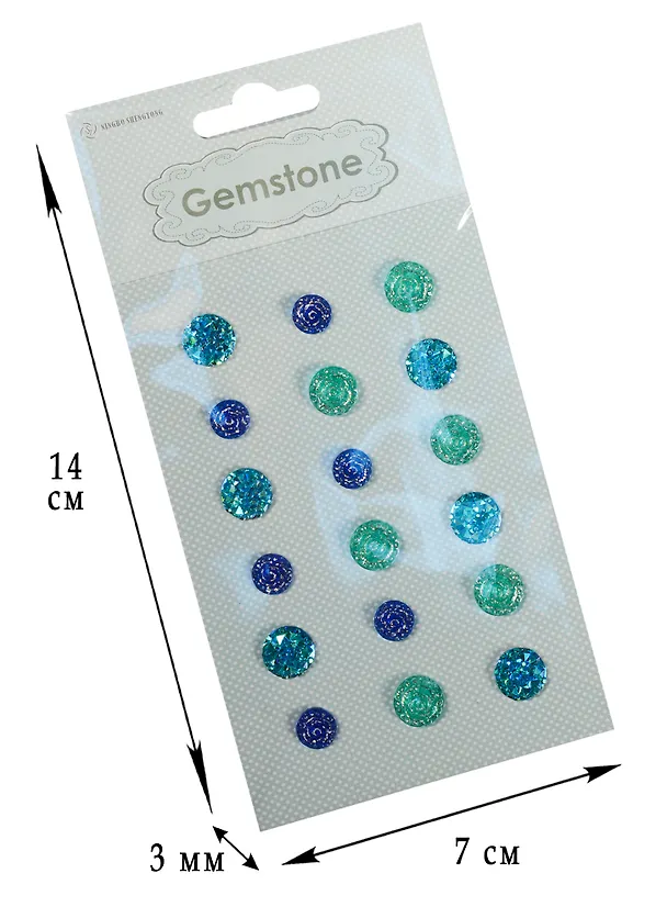 Стикеры полубусины синие/зеленые/голубые, 18шт