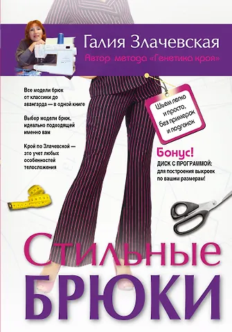 Хороший учебник по шитью брюк с учётом особенностей любой фигуры. Именно учебник, а не глянцевая книжка с набором красивых картинок моделей. Всё объяснено и растолковано максимально наглядно и понятно. Особенную ценность , на мой взгляд, представляют разделы посвящённые снятию мерок для каждого типа фигуры и построение базовой выкройки. Метод работает! Брюки "садятся" идеально с первой примерки. Для тех кто не хочет строить выкройку сам - есть диск - реальная помощь начинающему модельеру.