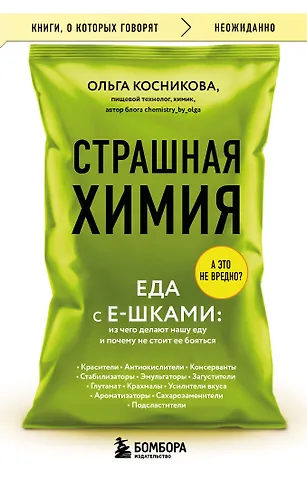 Технолог Ольга Косникова на страницах своей книги проведет нас за кулисы производства продуктов питания. Почему нам важно в этом разбираться? Многие не задумываются, но стресс в отношении еды и “хемофобия”, о которой Ольга пишет в своей книге, могут нанести намного больше вреда организму человека, чем большинство пищевых добавок. С помощью этой книги вы окажетесь на одной странице с современной наукой. И историями о “страшном глутамате” и “продуктах, которые уже не те, что раньше” вас будет больше не напугать». — МАРИЯ КАРДАКОВА (@marysstories), нутрициолог, специалист общественного здравоохранения, адвокат еды из Лондона