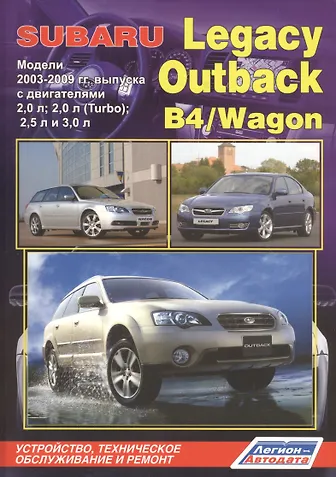В издании подробно описано устройство, эксплуатация, техническое обслуживание и ремонт полноприводных автомобилей Subaru Legacy / Outback / В4 / Wagon 2003-2009 гг. выпуска, оборудованных двигателями (SOHC и DOHC) рабочим объемом 2,0 л; 2,0 л (с турбонаддувом); 2,5 л и 3,0 л. Издание содержит руководство по эксплуатации, подробные сведения по техническому обслуживанию автомобиля, ремонту и регулировке элементов систем двигателя (в т.ч. системы впрыска топлива, турбонаддува, запуска и зарядки), механической и автоматических (4-х и 5-ти ступенчатых) коробок переключения передач (МКПП и АКПП), раздаточных коробок, элементов тормозной системы (включая антиблокировочную систему тормозов (ABS), си