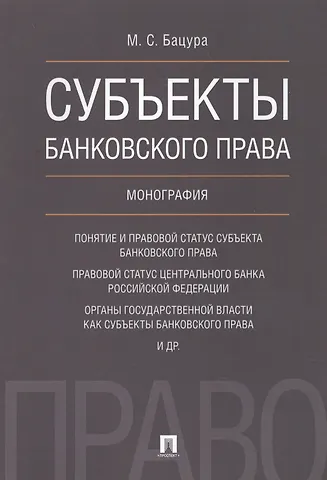.Монография адресована широкому кругу читателей: студентам бакалавриата и магистратуры, аспирантам, научным и практическим работникам, а также всем интересующимся банковским правом.