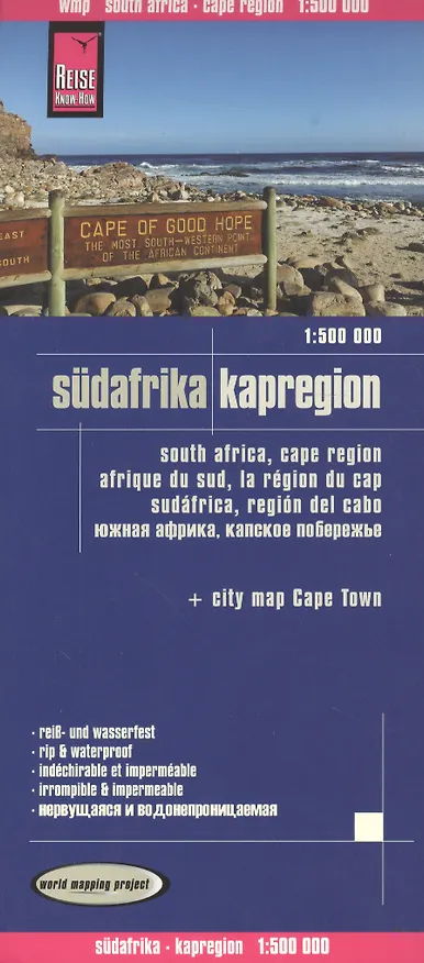 Карта Южной Африки и Капского побережья с подробной картой Кейптауна. Нервущаяся и водонепроницаемая. Масштаб 1 : 500 000