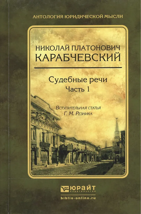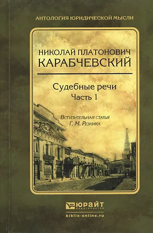 Карабчевский Николай Платонович (1851—1925) — один из самых выдающихся представителей присяжной адвокатуры. Подвижнический труд Карабчевского, его отношение к избранной профессии, мужество при проведении защиты по сложнейшим делам позволяют, как ни на каком другом примере, составить представление об истинном предназначении адвоката, месте и роли адвокатуры в обществе. Он с блеском проводил дела разной категории, как в качестве защитника, так и представителя потерпевшего, в чем убеждают речи, включенные в эту книгу.