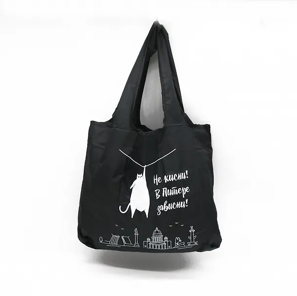 Сумка-авоська черная Санкт-Петербург. Не кисни! в Питере зависни. [СК04-0009]