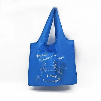 Сумка -авоська синяя Санкт-Петербург. Наши люди в булочную..[СК04-0008]