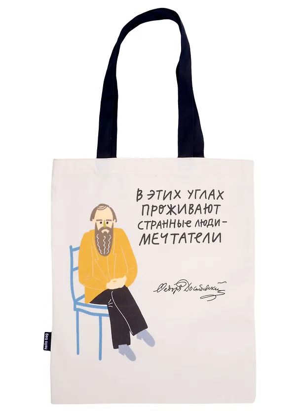 Атмосферный шоппер с одним из любимых писателей и его цитатой. Рисунок достаточно схематичный, но выглядит красиво - Достоевский вполне узнаваем, текст в меру крупный, в целом изображение четкое и надпись ровная. А на обратной стороне шоппер минималистичный и однотонный - можно выбирать сторону под настроение. Ручки комфортны в носке, плечи не натирают и белую одежду не пачкают. Пошив у сумки прекрасный, нитки нигде не вылезают, все швы плотно стянуты. Стирка вещь не деформировала, и это радует. Разумная цена тоже понравилась.