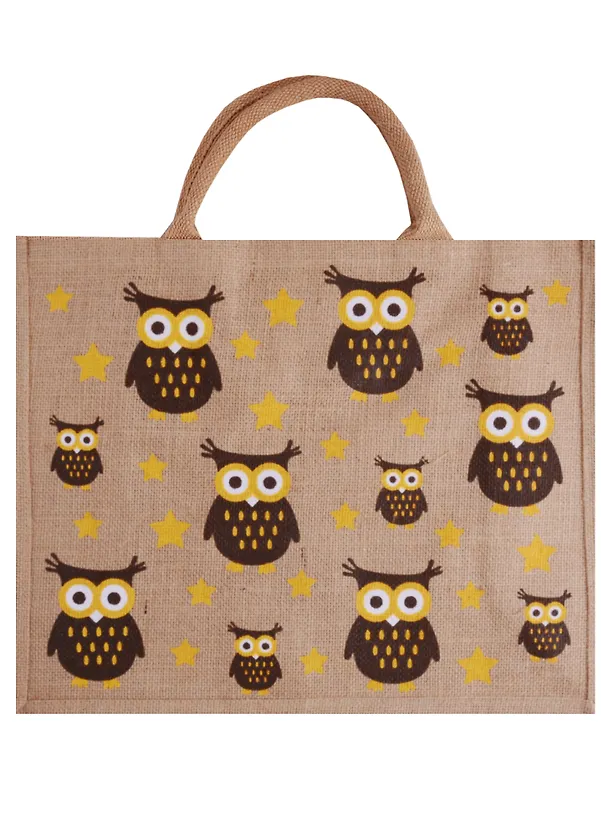 Сумка джутовая L Совы (43х34х19) (12-Eline-2-L)