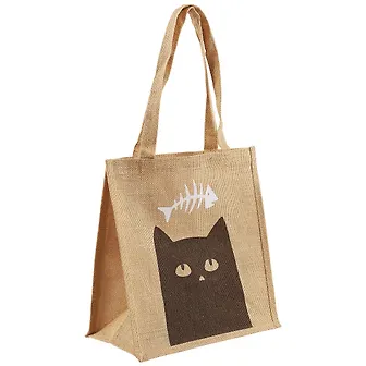 Сумка джутовая M Кот с рыбкой (32х34х18) (12-Eline-9-M)