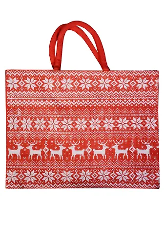 Сумка джутовая (PB3068) (43х34х19) Олени красная