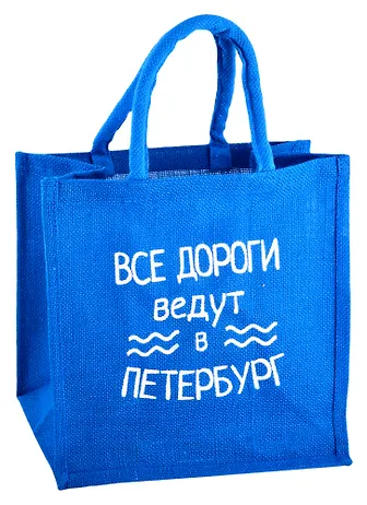 Всем, кто купил много книг и сувениров и думает, как унести это богатство домой, пригодится удобная джутовая сумка «Все дороги ведут в Петербург». Яркая, с прочными ручками, она вместит всё, что вы захотите забрать на память.