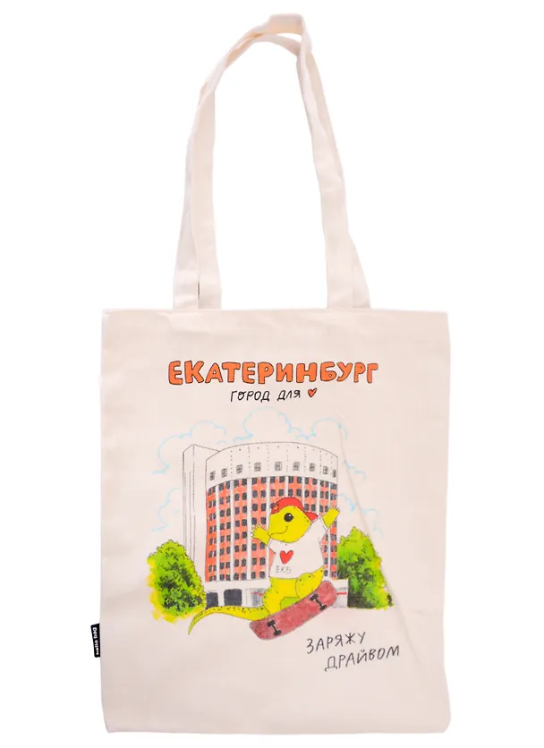 Сумка Екатеринбург Ящерка заряжу драйвом (бежевая) (текстиль) (40х32) (СК2022-206)