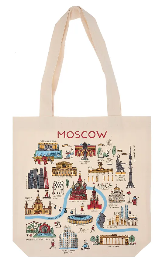 Сумка карта Москвы обычная, похожа на сумку шоппрер, но очень практичная и удобная в применении. Сумка хоть и выполнена из белой ткани, ну во первых сильно и быстро сумка не марается, а вот вторых легко стирается в стиральной машинке, быстро высыхает и не требует глажки. Вместительная, ручки крепкие, поэтому можно положить и что то тяжелее. Часто хожу с ней в магазин за продуктами.