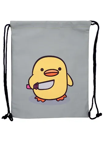 Сумка-мешок «Уточка с ножом» создана для тех, кто любит ироничные принты и хочет выделиться в толпе. Яркая уточка на тёмном фоне сразу притягивает взгляд и добавляет образу немного дерзости и юмора.