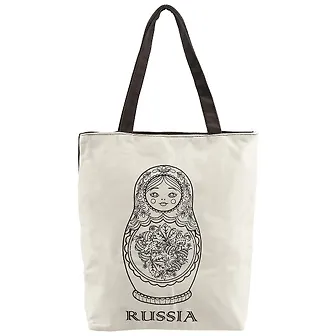 Сумка на молнии Матрешка на белом фоне, 38*35см (текстиль, флис)