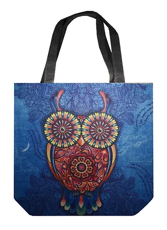 Сумка на молнии Сова с узором на синем фоне (38х35) (текстиль) (12-11522-703)