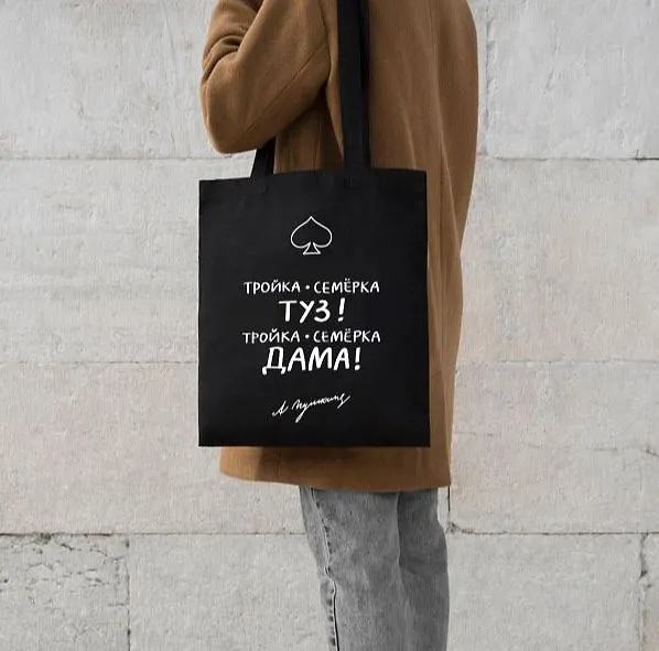 Сумка Пиковая Дама - Тройка-Семерка-ТУЗ (черная) (текстиль) (40х32)