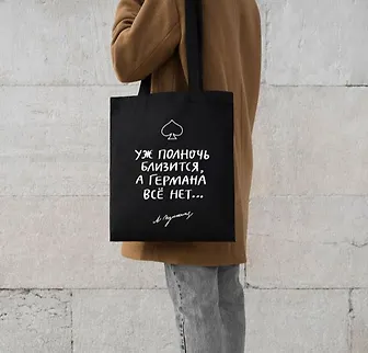 Давно использую текстильные шопперы вместо стандартных мешков, считая и такую "хозяйственную" сумку немаловажной частью образа, поэтому данный шоппер привлек меня прежде всего цитатой из "Пиковой дамы", с которой у меня связан небольшой житейский анекдот)) Шоппер легкий, удобный, хорошего качества, думаю, будет крепким в носке.