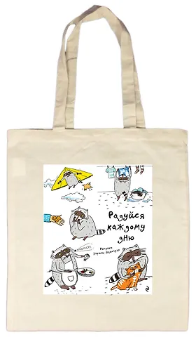 Веселые еноты теперь и на сумках! Легкая, удобная сумка из плотной ткани с цветным рисунком любимых персонажей станет отличным спутником на каждый день. Длина ручки позволяет носить ее на плече. Смешные надписи и авторские рисунки забавных енотов от Карины Илиопуло будут радовать вас каждый день. А также станут отличным подарком для друзей.