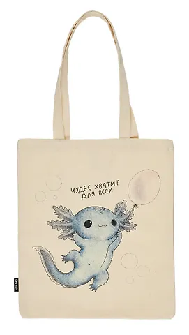 Удобная, практичная и вместительная сумка-шопер с милым принтом аксолотль.