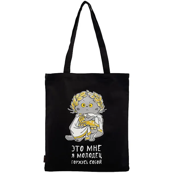 Сумка-шоппер Басик Это мне я молодец горжусь собой черная, текстиль 40см.*32см.