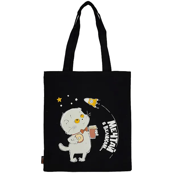 Сумка-шоппер Басик Мечтай о великом черная, текстиль 40см.*32см.