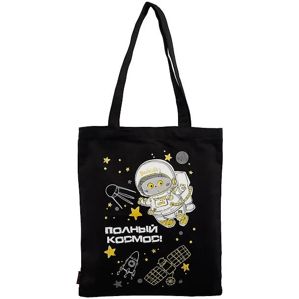 Отличная черная сумка с космической тематикой и с милым Басиком, которого я уже кажется обожаю. Цвет и принт яркие, красивые, сама сумка прочная и удобная, я уже во всю с ней хожу, мне нравится. С учётом что в интернет -магазине постоянно скидки и мне как раз удалось ухватить со скидкой, все нравится вдвойне.
