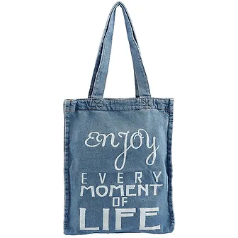 Сумка-шоппер джинсовая на молнии Enjoy every moment (40*33см) (светло-синий)