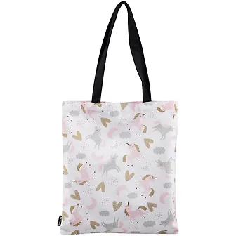 Ходила в магазин со своей младшей сестрой и она выбрала этот шопер. Сумка очень нежная, красивое сочетание пастельных цветов. Сами единорожки милейшие. На вид сумка очень вместительная, с ней можно ходить и в магазин за продуктами и на прогулку. Швы ровные, нитки не торчат, цена адекватная . Ручки крепкие, выдержит много.