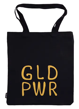Сумка-шоппер Gold power, черная (текстиль) (40х35)