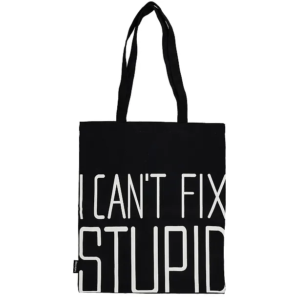 Сумка-шоппер I cant fix stupid черная, текстиль 40см.*35см.
